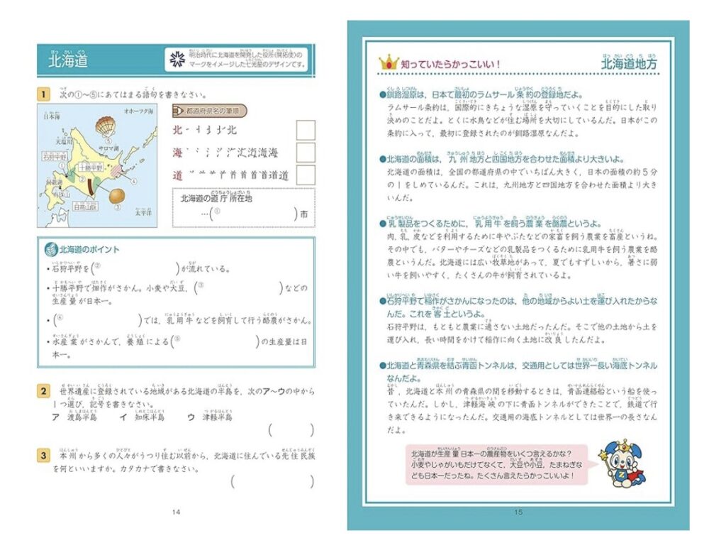 いきなり漢字+白地図だとハードルが高いですが、こちらのドリルはひらがなから漢字に移行するのでステップを踏みやすいです。