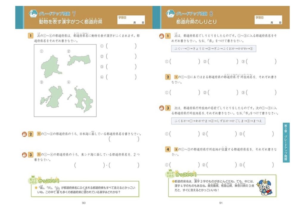 ▼島や新幹線もまとまっていて、一歩進んだ学習ができるドリル