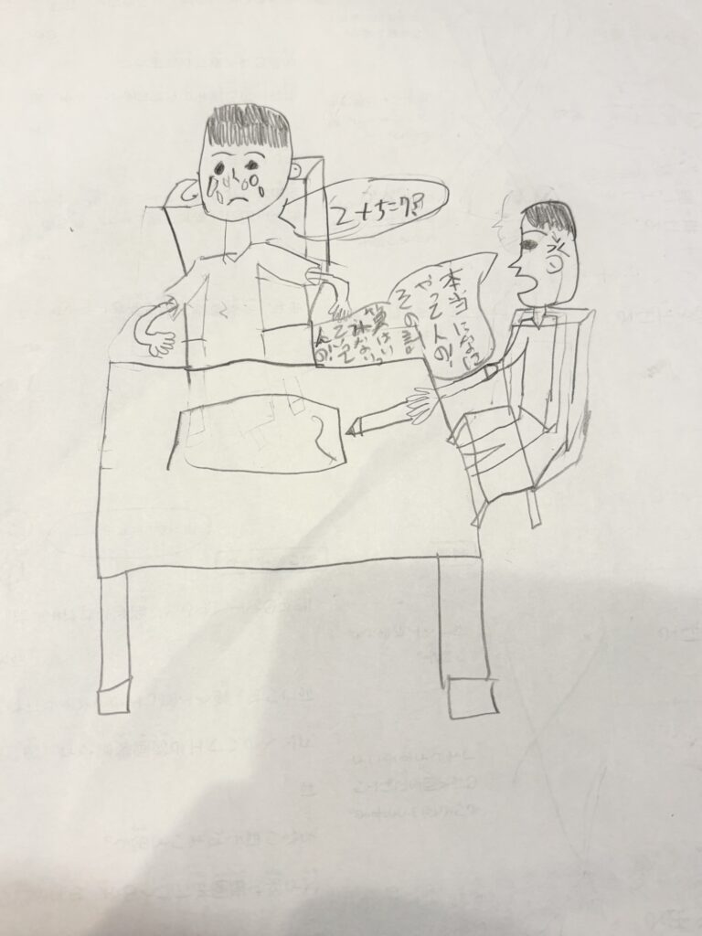 私はつい言いすぎちゃって、子どもが泣いてる絵をよく書くようになっちゃって…悩んで。反省したんだよね。