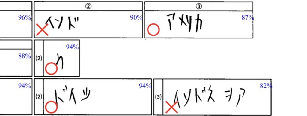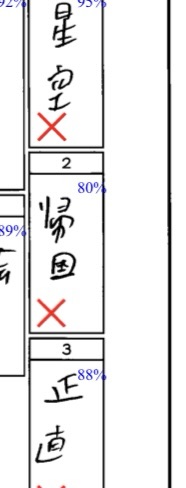 ▼分かっていた漢字なのに、雑すぎて×。